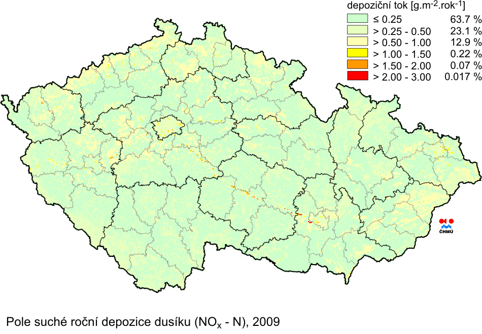 velikost se rovná 29 978 t na plochu ČR. Suchá depozice oxidovaných forem