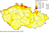Maximálních hodnot dosahuje v oblasti Krušných hor. V druhé polovině 90. let