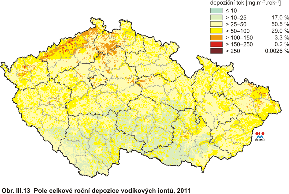 vytvořeny mapy depozice celkové. Mapa mokré depozice vodíkových iontů byla