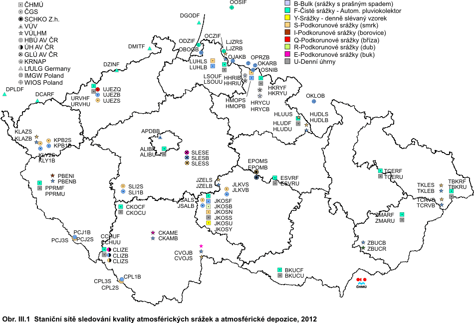 Obr. III.1 Staniční sítě sledování kvality atmosférických srážek a