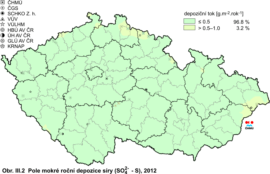roce 2003 a 2011). Nejvyšších hodnot mokré depozice síry bylo v roce 2012