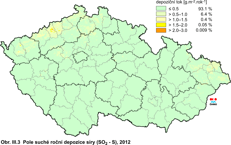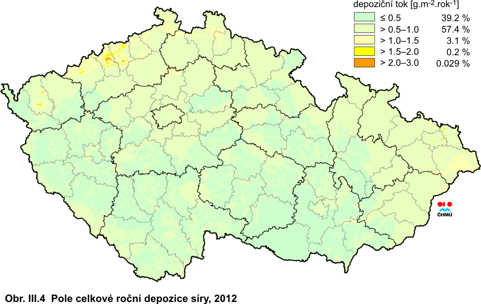 depozice síry dále poklesla, a to z důvodu snížení imisních koncentrací