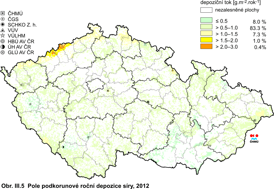 III.3). Podkorunová depozice síry na zalesněný povrch naší republiky