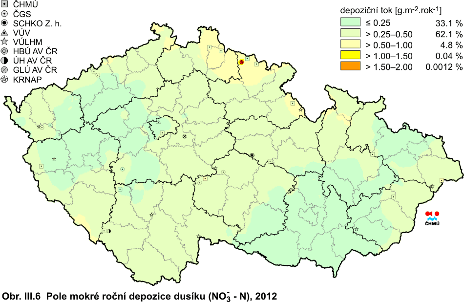 závažností jejich působení na složky životního prostředí. Mapy mokré depozice