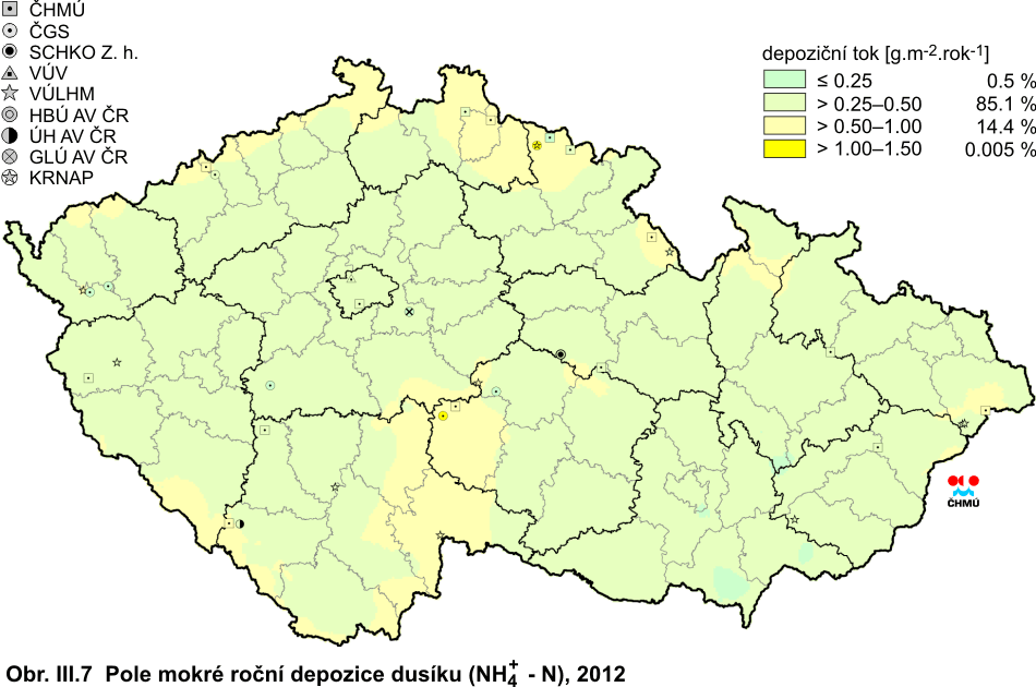 Obr. III.7 Pole mokré roční depozice dusíku (NH4+–N),