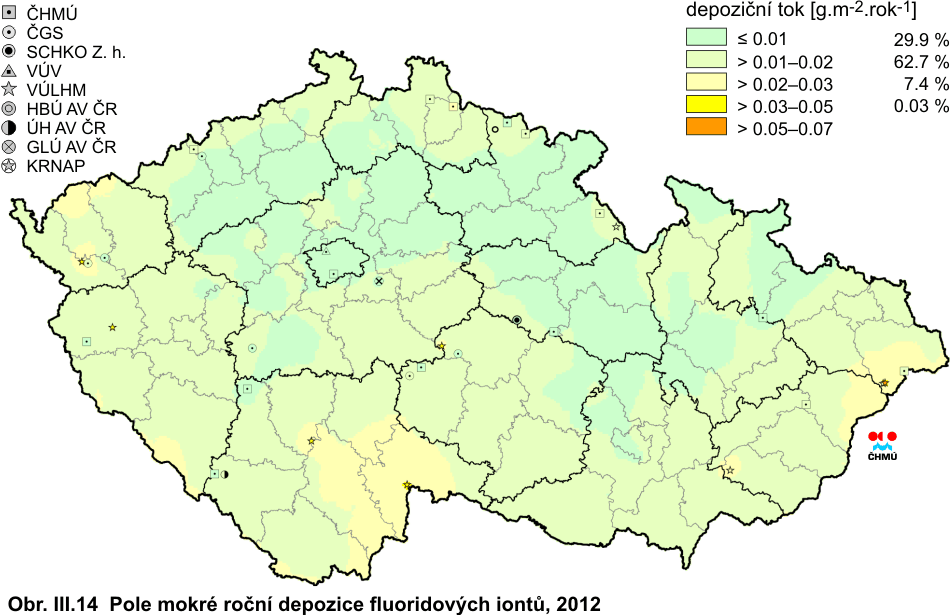 Mokrá depozice fluoridových iontů vykazuje nejvyšší