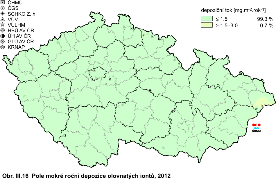 se hodnoty depozice olovnatých iontů výrazně snížily. Mokrá depozice olova