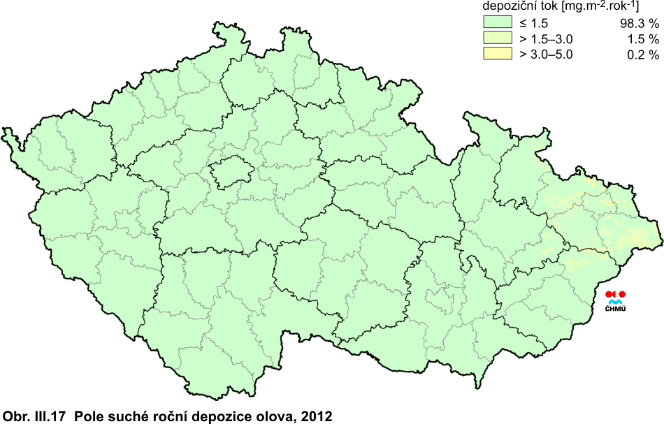 depozice olova byla v roce 2012 na stejné úrovni jako v roce 2011, kdy