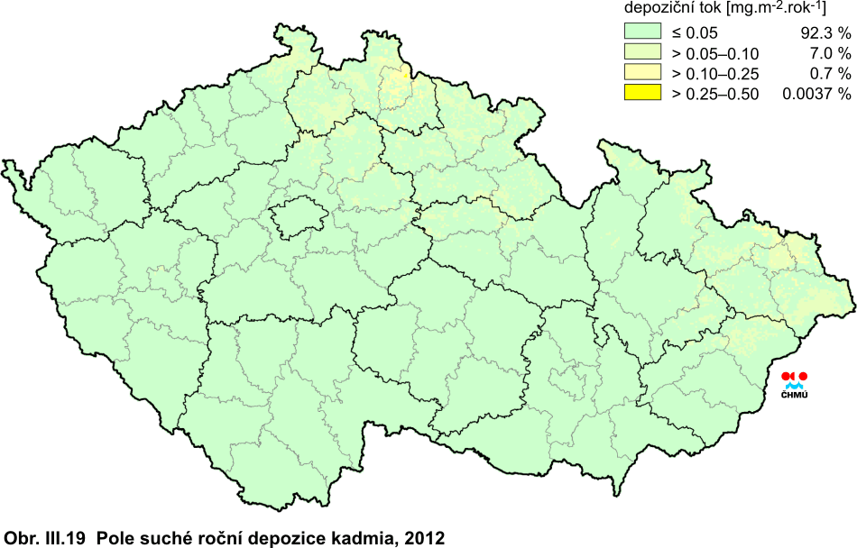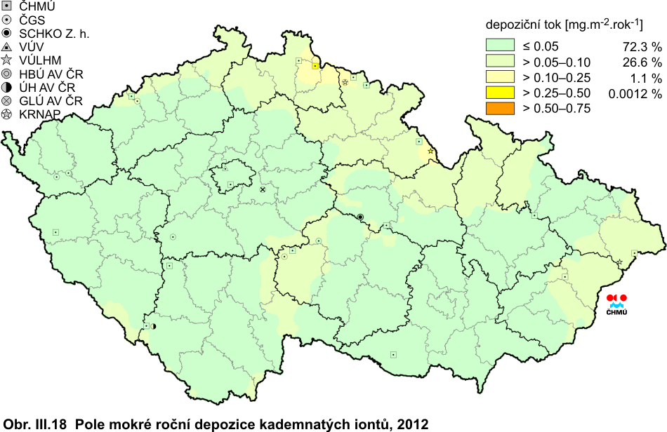 Mokrá depozice kadmia v porovnání s rokem 2011 vzrostla.