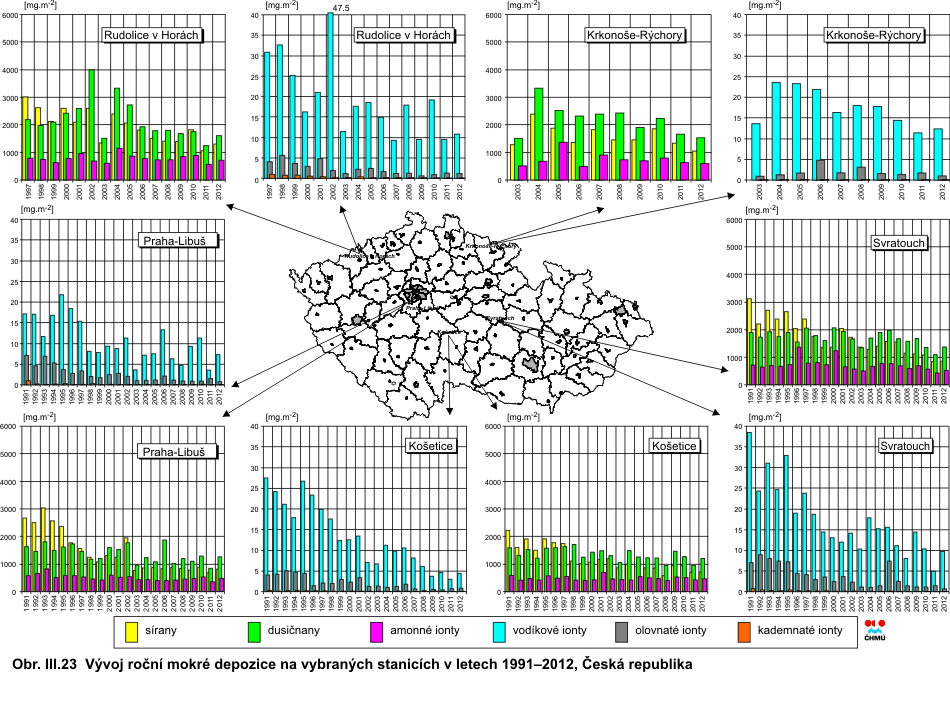 poklesu mokré depozice některých složek (převážně síranů, vodíkových iontů a