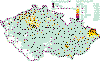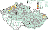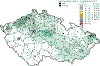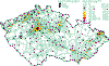 The absolute IHk maxima were recorded at Public Health Service stations Praha 5-Svornosti, Praha 8-Sokolovská and Praha 5-Řeporyje. Concentrations presented in the database (62–500 μg.m-3) correspond to the gauge of the used measuring instruments. Thus it is probable that some of the stated concentrations might have been higher and remained unrecorded. The daily limit value (IHd) 5,000 μg.m-3 was exceeded at 3 stations in 295 cases. The highest frequency of exceedence was recorded again at Public Health Service stations Prague 5-Svornosti and Prague 8-Sokolovská: 52.6 %, resp. 35.0 %. Besides, the exceedence frequency at the station Prague 5-Řeporyje amounted to 4.5 %. The highest daily average level was measured at Prague 5-Svornosti station on 20 January andamounted to 13,725 μg.m-3. The high levels of relative IHd exceedence frequencies for CO correspond to those for NOx and SPM at these stations. In general, the number of limit values exceedences was higher in 2001 than in 2000; the measured daily maximum was somewhat lower. Lead The exceedence of the annual limit value of this pollutant has not been recorded in long terms in the Czech Republic. The highest annual average lead concentrations did not reach 0.1 μg.m-3 in 2001 (see the Tabular Survey). Cadmium In 2001 the cadmium concentrations were close to the limit value at the HS station Tanvald (9.7 μg.m-3), where the limit values were repeatedly markedly exceeded in the past. The CHMI station Souš and the HS station Praha 4-Ant. Staška reported the cadmium annual average concentrations above one half of the annual limit value (6.5 μg.m-3 and 5.6 μg.m-3 respectively). Tab. 2.2.2 Highest daily pollutant concentrations at stations in the Czech Republic in 2001 Tab. 2.2.8 Highest half-hour (3-hour) pollutant concentrations at stations, the Czech Republic 2001 Fig. 2.2.1 Fields of annual arithmetic means of concentrations with presentation of measured values at stations, sulphur dioxide, 2001 Fig. 2.2.2 Fields of 95th percentiles of daily concentrations with presentation of measured values at stations, sulphur dioxide, 2001 Fig. 2.2.3 Fields of annual arithmetic means of concentrations with presentation of measured and recalculated values at stations, SPM, 2001 Fig. 2.2.4 Fields of 95th percentiles of daily concentrations with presentation of measured and recalculated values at stations, SPM, 2001 Fig. 2.2.5 Fields of annual arithmetic means of concentrations with presentation of measured values at stations, nitrogen oxides, 2001 Fig. 2.2.6 Fields of 95th percentiles of daily concentrations with presentation of measured values at stations, nitrogen oxides, 2001 Fig. 2.2.7 Fields of AOT40 ozone exposure index for forests, 2001 Fig. 2.2.8 Fields of AOT40 ozone exposure index for farm crops, 2001
