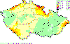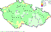 The lowest values were recorded in the foothills of the Šumava and Český les Mts.