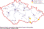 The winter months on the turn of the years 2002 and 2003 had, with regard to the temperatures and precipitation, significant fluctuations and generally mildly subnormal temperatures. The temperatures of February 2003 were slightly subnormal with maximum deviation –3,0 C from the normal but in January and March the temperatures were slightly above normal. The precipitation in January 2003 was mildly to slightly above normal whereas the precipitation totals in February and in March 2003 were markedly below the normal and declined to 33 % and 38 % of the normal respectively. The January snow cover in the mountains was 60–100 cm, in February and in March the mountain ridges had 30–90 cm of snow. The winter period on the turn of the years 2003 and 2004 recorded temperatures slightly above normal, and the precipitation was around the normal. Markedly above normal was November 2003 with average monthly temperature 4.8 C. The total precipitation of November 2003 was markedly below normal; the measured value (22 mm) represented 45 % of the normal. The December 2003 precipitation was above normal. The January atmospheric circulation was characterized by almost the same occurrence frequency of cyclonic and anticyclonic situations, in February and in March the anticyclonic types prevailed distinctively. In November and December 2003 the anticyclonic character of the weather covered 61–63 % of the two-month period. The assessment of the winter period 2002–2003 was specific and influenced by the fact that the new legislative documents on air quality protection and operation of smog regulation systems came into force in the Czech Republic. The respective provisions of the Act No. 86/2002 Coll. (Clean Air Act) cancelled, among others, the Decree No. 41/1992 Coll. This Decree setting the operation of the smog regulation systems was replaced by the Decree No. 553/2002 Coll. This new legislative document substantially modified mainly the alert threshold limit values upon the exceedance of which the smog situations are issued, and the directory of stationary sources liable to the regulation set by the central regulation rules was changed. The central regulation rules will be applied only to the selected stationary sources in Ústí nad Labem and Karlovy Vary Regions, the rules are out of force in the Ostrava Region. Alert threshold limits have been newly set for SO2, NO2 and ground-level ozone. Today there are no serious impacts of SO2 air pollution concentrations and in accordance to the previous assessment of long-term trends of the number of days with the issued signals within the Smog Regulation System it can be expected that no regulation of sources due to high SO2 concentrations will be issued. Similarly, the transition from the sum of nitrogen oxides to the assessment of NO2 will ensure, as prognosed by the earlier assessment of the Smog Warning and Regulation System, very low probability of fulfilling the conditions for the signals to be issued. Hourly averages of NO2 concentrations did not reach the level of the alert thresholds at the beginning of the year 2003. The highest NO2 concentrations occurred mostly at the end of February when the weather above the territory of the Czech Republic was influenced by the governing anticyclone with the centre above Scandinavia, later above eastern Europe. During the whole period inversions and weak air flows occurred and bad dispersion conditions prevailed. Similar meteorological situations which resulted in deteriorated air quality occurred also at the beginning of the second December decade when the territory of the Czech Republic was influenced by the anticyclone. Though the meteorological situations, during which unfavourable dispersion conditions necessary for the accumulation of pollutants close to the ground were recorded, represented potential danger with regard to the occurrence of the smog situation, no signals within the Smog Warning and Regulation System had to be issued during the monitored period as nowhere in the Ústí nad Labem and Karlovy Vary regions the respective conditions for the signals to be issued were fulfilled. It is obvious that the decreasing trend of the number of signals issued continues and this favourable situation can be expected in the next years unless there is no in-mass return to solid fuels in local heating. Certain potential danger is represented mainly by traffic producing increased NO2 concentrations, mainly in larger cities. Nevertheless even there the NO2 alert threshold limit values were exceeded only sporadically and the episodes were not continuous. The alert threshold for SO2 was not exceeded at any station. In the next years it will be therefore necessary to focus on the ground-level ozone for which the signals are issued within the central regulation rules in the summer period. Ozone is a typical secondary pollutant, created in the atmosphere under the influence of solar radiation on nitrogen oxides and VOCs. Initial substances of the complex chemical reactions resulting in ground-level ozone creation, are called precursors. More than 50 % of ozone precursors are represented by air pollution from traffic. Optimum meteorological conditions for the creation of ground-level ozone, i. e. intensive solar radiation, high temperatures and calm weather or light wind, occur in anticyclonic situations in summer periods. From 1 April to 30 September 2003 the anticyclonic and cyclonic situations determining the character of the weather in the Czech Republic were represented by equal shares. The lowest number of anticyclonic situations, on 8 days in total, occurred in July. On the contrary, the highest number, on 25 days in total, occurred in August when the continuous series of only anticyclonic situations from 3 to 27 August with prevailing western anticyclonic-summer type was recorded. In May the station Prague-Libuš reported the highest maximum daily temperature 26.5 C, in July it was even 34.4 C and on 13 