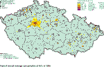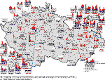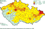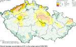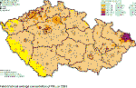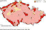 The exceedence of limit values for the suspended particles is a major problem in most European cities. The occurrence of suspended particles in ambient air is a rather complicated phenomenon and their actual concentration expressed in mass number is represented only partially by local emission of primary particles, especially by transport emission. Further contribution to the actual concentration is represented by reemission (i.e. the whirling of already emitted particles for instance from the road surface or from building sites), and the remaining part by secondary inorganic and organic particles created by chemical transformation of gaseous components both of anthropogenic origin (SO2, NOx and non-methane volatile organic compounds), and by emission from the natural environment. Thus the problem of exceeded concentrations of suspended particles in European cities will have to be solved both within all-European cooperation, and at local or regional levels, mainly through measures aimed at local heating and by the reduction of traffic emission, including better street cleaning. Relatively high contribution of secondary particles show that significant decrease of PM10 concentrations will be possible by further decreasing of emissionof the components causing the creation of the fine fraction of secondary particles in atmospheric aerosol. This demands mainly the decreasing of nitrogen oxides and VOC emissions in compliance with the requirement to meet the national emission ceilings, but in such a way that by the deadlines set by the Clean Air Act the air pollution limit values are met for PM10. Further decrease of emissions, mainly nitrogen oxides emissions but also of VOC emissions on a large scale, is the only possible way how to decrease the loads caused by exceeding ground-level ozone concentrations. When interpreting the assessment results it is necessary to stress that the air pollution maps are based on the measurements which is focused mainly on large agglomerations pursuant to the legislative requirements. The expert estimates and the results of the published works [e.g. 24, 25] show, however, that it is highly probable that both the increased and above-the limit concentrations of a number of substances occur also in small villages where there are no measurements carried out and where lives a relatively large share of population of the Czech Republic. The substances concerned are mainly as follows: suspended particles, polycyclic aromatic hydrocarbons and heavy metals. The essential role in air pollution is played by geomorphological conditions, traffic loads and the way of heating. Due to burning wood and coal there occur increased emissions of particles, polycyclic aromatic hydrocarbons and heavy metals. Moreover, by burning refuse in local fire places dangerous dioxins are emitted in the ambient air. It is necessary to note that the presented maps have been constructed by using the best know techniques corresponding to the current level of knowledge and as such they represent the best known approximation of the actual air pollution situation. This, however, does not mean that the maps should be regarded as a dogma. The procedures of map construction have to be further elaborated and it is necessary to focus our attention mainly on the error estimate/probability which is very complicated.