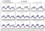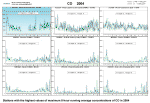 European Time (= 7:00 and 19:00 UTC). Fig. 2.2.41 Exposure index AOT40 values in 1995–2004 at selected stations, average of 5 years Fig. 2.2.42 Field of exposure index AOT40 values, average of 5 years 2000-2004 Fig. 2.2.43 Stations with the highest AOT40 values in recent 5 years, 2000–2004