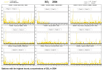 2.2.2.3 Nitrogen dioxide The exceedence of annual limit values for NO2 occurred only in limited number of localities exposed to traffic in agglomerations and large cities. Of the total number of 142 localities at which NO2 was monitored in 2004 the annual limit value of 40 μg.m-3 was exceeded at 3 AMS stations in Prague (Legerova, nám. Republiky and Smíchov). The margin of tolerance was exceeded at the traffic-oriented hot-spot station Prague 2-Legerova. The Legerova station recorded a great number of exceedences of the limit value of NO2 hourly concentration – 212x, and including the margin of tolerance 18x, which represents the maximum tolerated number of exceedences per year (see Table 2.2.8). The results of this station confirm the big problem of the capital city of Prague with the traffic routes leading through the city centre. Other Czech stations (with the valid annual average) do not exceed the 1-hour limit value including the margin of tolerance. At most stations presented in Fig. 2.2.9 both the annual average concentration and the 19th highest hourly NO2 concentration had a moderately declining trend until 2001. In 2002 this trend stopped and in 2003 there was a slight increase of NO2 pollution at most localities. In 2004, on the contrary, a slight decrease of NO2 concentrations was recorded at almost all stations as compared to 2003. The field of NO2 annual average concentration (Fig. 2.2.10) shows that the relative share of this substance in the category above 32 μg.m-3 decreased. Fig. 2.2.11 presents the courses of hourly concentrations in 2004 showing the limit value exceedences. The AMS Prague 2-Legerova, established in August 2003 as a traffic hot-spot station monitoring the communication with heavy traffic, showed the exceedence of the limit value in 212 cases in 2004. The traffic-oriented ZÚ station Děčín OHS exceeded the limit value in 42cases. Due to measurement dropouts, however, this station has not the valid annual average and its use for air quality assessment is only limited. The construction of the map with the field of NO2 is based on the combination of measurement and modelling results; in 2004 the results of traffic-oriented modelling are applied in more details than in the previous years. With regard to the scale of modelling not all sections of roads of lower categories are included. The higher NO2 concentrations can occur also in the vicinity of local communications in the villages with intensive traffic and dense local transport network. Tab. 2.2.8 Stations with the highest values of the 19th and maximum hourly concentrations of NO2 Tab. 2.2.9 Stations with the highest values of annual average concentrations of NO2 Fig. 2.2.9 19th highest hourly concentrations and annual average concentrations of NO2 in 1992–2004 at selected stations Fig. 2.2.10 Field of annual average concentration of NO2 in 2004 Fig. 2.2.11 Stations with the highest hourly concentrations of NO2 in 2004