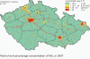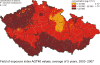 in 1996–2007 at selected stations II.4.2.2.3 Ground-level ozone Of the total number of 36 rural and suburban stations for which the AOT40 calculation is relevant according to the legislation, the target value for ozone for the protection of vegetation was exceeded at 32 localities in 2007 (the average for the years 2003–2007). As compared with the previous assessment for the period 2002–2006, the situation has not markedly changed. The temperature for the period from which the AOT40 exposure index is calculated (May–July 2007) was by 0.3 °C lower than that in the year 2002, which has been already excluded from the five-year assessment. The most significant decrease of AOT40 values was recorded on the territory of the Hradec Králové and Pardubice Regions (localities Hr. Králové-observatoÅ™ and Svratouch), which reached below the target limit value. As for the measured concentrations in the localities, it can be stated that the number of the localities with the increase of the AOT40 exposure index was slightly higher than the number of localities with its decrease. The spatial distribution of AOT40 exposure index for the 2007 assessment is shown in the map in Fig. II.4.2.57. Fig. II.4.2.58 presents the AOT40 development in 2003–2007 in selected stations. Tab. II.4.2.24 Stations with the highest AOT40 values of ozone at rural and suburban stations Fig. II.4.2.56 Exposure index AOT40 values of ozone in 1996–2007 at selected