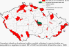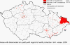 II.4.3 Areas with deteriorated air quality II.4.3.1 Areas with deteriorated air quality with regard to health protection The above mapping procedures were used for the preparation of the maps of spatial distribution of the respective air pollution characteristics presented in the previous subchapters, both for the exceedance of the limit values and for the exceedance of the target values. Areas with the values of air pollution characteristics higher than the respective (target) limit values (areas for the exceedance of the limit value plus the margin of tolerance marked in red or brown) delineate the areas with deteriorated air quality. Table II.4.2.26 brings the overview of the areas in the Czech Republic, in which the level of the limit values, and especially of the target values for human health protection were exceeded in 2008, based on the results of mapping air pollution characteristics distribution. The exceedance percentage in the respective territory is also presented. Table II.4.2.25 summarises the areas of exceedances of limit values+the margins of tolerance for human health protection in 2008. The tables show the exceedance percentage of the respective limit values/target values in the given territory for individual components and air pollution characteristics, and summarize the areas in which at least one limit value/target value of the given components was exceeded. The percentages of exceedances presented in the overview in Table II.4.2.26 correspond to the percentages of the territories of the given administrative unit in which at least one limit value of the set of limit values for the protection of human health was exceeded. The map in Fig. II.4.2.57 depicts the delineation of the areas with deteriorated air quality with regard to limit values, and the map in Fig. II.4.2.58 shows the delineation of the areas with the exceedance of the target values for the protection of human health, ground-level ozone excluded, and in Fig II.4.2.59, ground-level ozone included. Table II.4.2.27 shows the list of administrative units with exceedances of the O3 target value for the protection of health within the areas of the Czech Republic and the share (%) of the area of exceedance of the respective unit. Ground-level ozone is presented separately, as it is evident that the measures aimed at the decrease of ozone concentrations exceeding the target value or the long-term objectives, should be taken at the regional and national level. II.4.3.2 Areas with deteriorated air quality with regard to the protection of ecosystems and vegetation Based on the mapping of air pollution characteristics distribution for the year 2008 with regard to ecosystems and vegetation protection (Chapter II.4.2.2.1, II.4.2.2.2 and II.4.2.2.3) the distribution for annual and winter average concentrations of SO2 and annual average NOx concentrations for the protection of ecosystems and vegetation is depicted. In 2008 none of the localities with monitoring stations, classified as rural, recorded the exceedances of the limit values for SO2 and NOx for the protection of ecosystems/vegetation. Table II.4.2.28 is presented for information. It shows the exceedances of the SO2 and NOx limit value and the AOT40 target value for the protection of ecosystems and vegetation within the national parks and protected areas (% of the territory) in 2008. The values were calculated on the basis of the respective maps of air pollution characteristics. Fig. II.4.2.57 Areas with deteriorated air quality with regard to health protection limit values, 2008 Fig. II.4.2.58 Areas with deteriorated air quality with regard to health protection target values, ground-level ozone excluded, 2008 Fig. II.4.2.59 Areas with deteriorated air quality with regard to health protection target values, incl. ground-level ozone, 2008 Fig. II.4.2.60 Areas with deteriorated air quality with regard to ecosystems/vegetation protection limit values in national parks and protected landscape areas, ground-level ozone excluded, 2008 Fig. II.4.2.61 Areas with deteriorated air quality with regard to ecosystems/vegetation protection limit values in national parks and protected landscape areas, including ground-level ozone, 2008