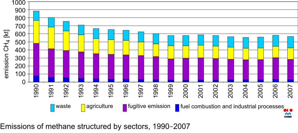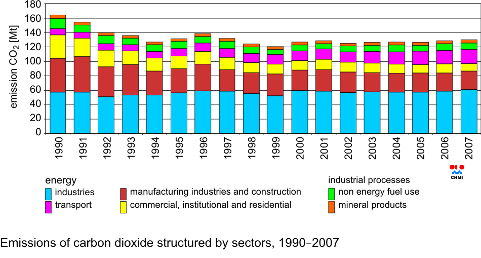 Emissions of carbon dioxide structured by sectors, 1990–2007 |