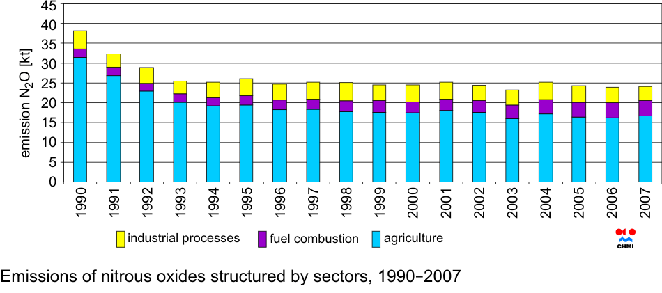 Emissions of nitrous oxides structured by sectors, 1990–2007 |