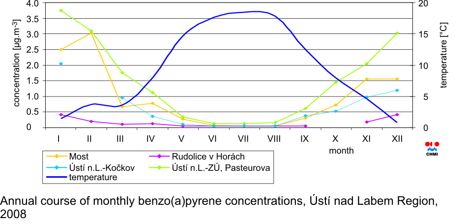 Annual course of monthly benzo(a)pyrene concentrations, Prague