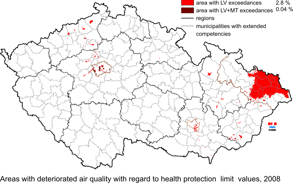 concentrations exceeding 180 μg.m-3 in the territory of the Czech