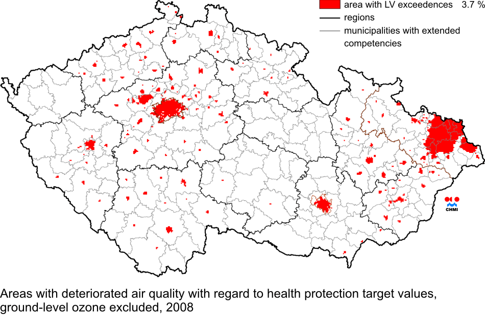 PM10 limit exceedances, Prague agglomeration, 2008 |