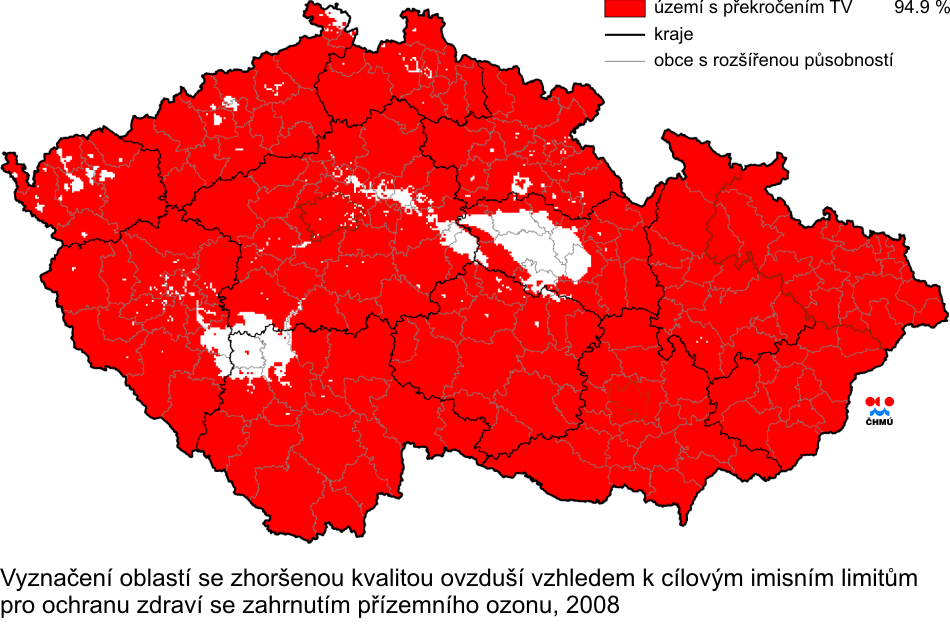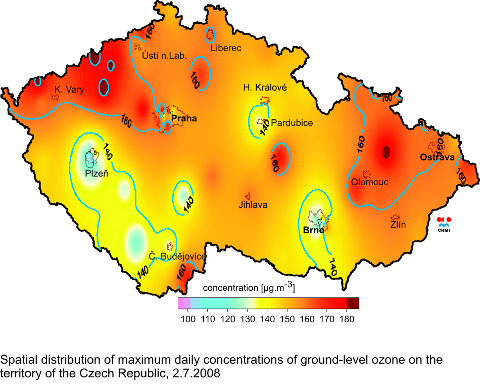 ozone on the territory of the Czech Republic, 2.7.2008 |