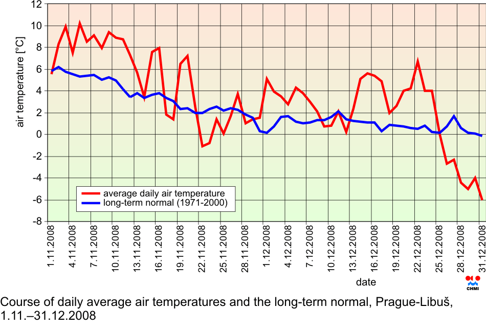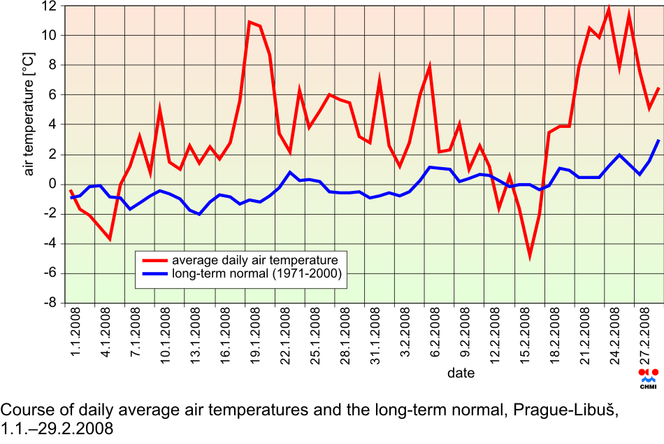 stations and the average monthly temperature, Brno agglomeration, 2008 |