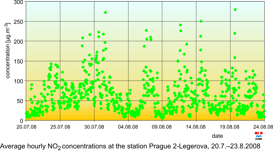 Average hourly NO2 concentrations at the station Prague 2-Legerova,