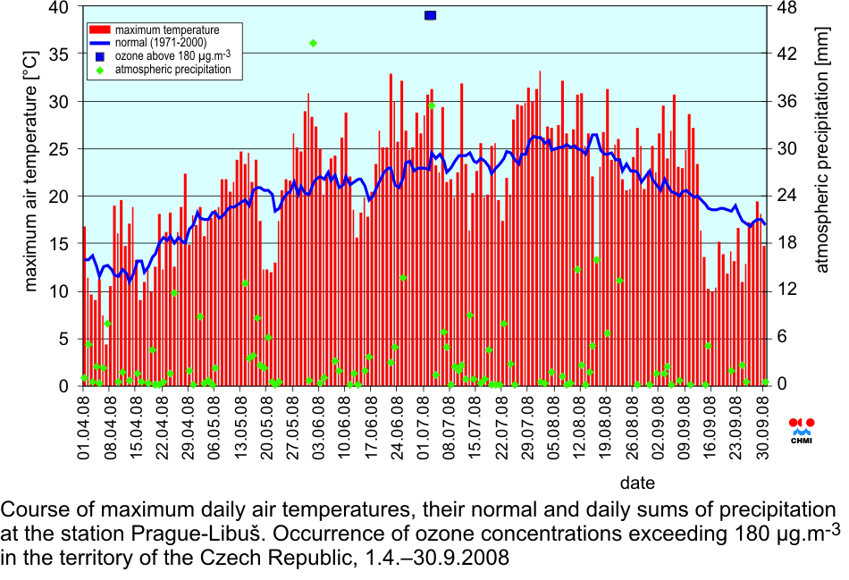 sums of precipitation at the station Prague-Libuš. Occurrence of ozone