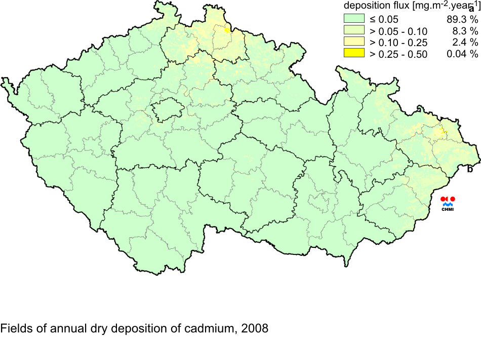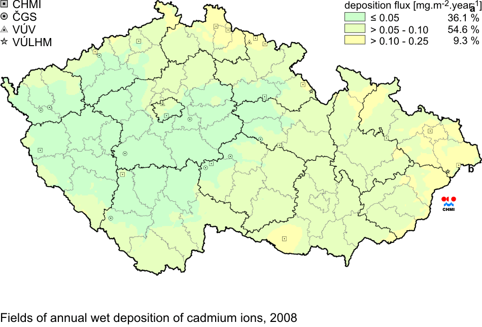 Fields of annual wet deposition of cadmium ions, 2008 |