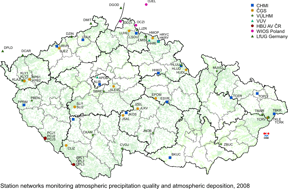 atmospheric deposition (expressed as μeq. l-1) at the CHMI stations,