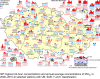 Fig. II.4.2.5 36th highest 24-hour concentrations and annual average concentrations of PM10 in 2000–2010 at selected stations with UB, SUB, I and T classification Fig. II.4.2.6 36th highest 24-hour concentrations and annual average concentrations of PM10 in 2000–2010 at selected rural (R) stations Fig. II.4.2.7 Field of the 36th highest 24-hour concentration of PM10 in 2010 Fig. II.4.2.8 Field of annual average concentration of PM10 in 2010 Fig. II.4.2.9 Stations with the highest exceedance of LV for 24-hour concentrations of PM10 in 2010 Fig. II.4.2.10 Stations with the highest exceedance of LV for annual concentrations of PM10 in 2010 Fig. II.4.2.11 Numbers of exceedances of the limit value for 24-hour concentration of PM10 in 2010 Fig. II.4.2.12 Annual average PM10 concentrations at the stations with the exceedance of the limit value, 2006–2010 Fig. II.4.2.13 Share of localities with the exceedance of the limit value for the 24-hour average concentration and annual average concentration of PM10, 2000–2010 Fig. II.4.2.14 Annual average concentrations of PM2.5 in the ambient air in 2004–2010 at selected stations Fig. II.4.2.15 Annual average concentration of PM2.5 at stations in 2010 Fig. II.4.2.16 Share of localities with the exceedance of the target value for the annual average concentration of PM2.5, 2004–2010 Fig. II.4.2.17 Average monthly PM2.5/PM10 ratio in 2010 Fig. II.4.2.18 Stations with the highest exceedance of LV for annual concentrations of PM2.5 in 2010