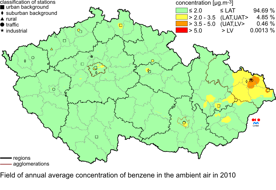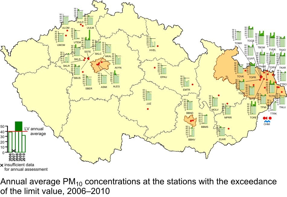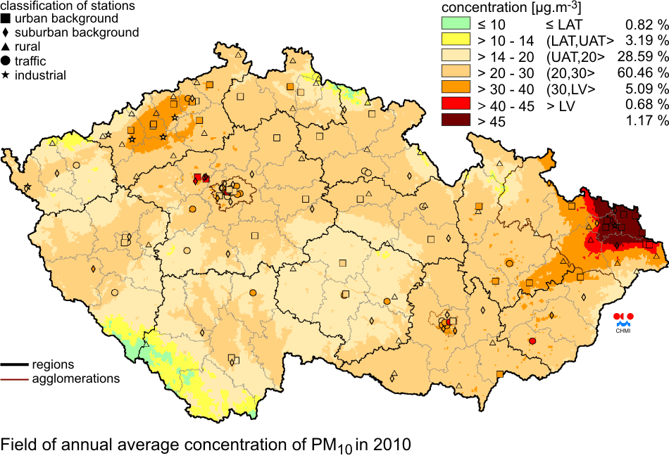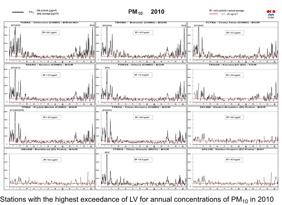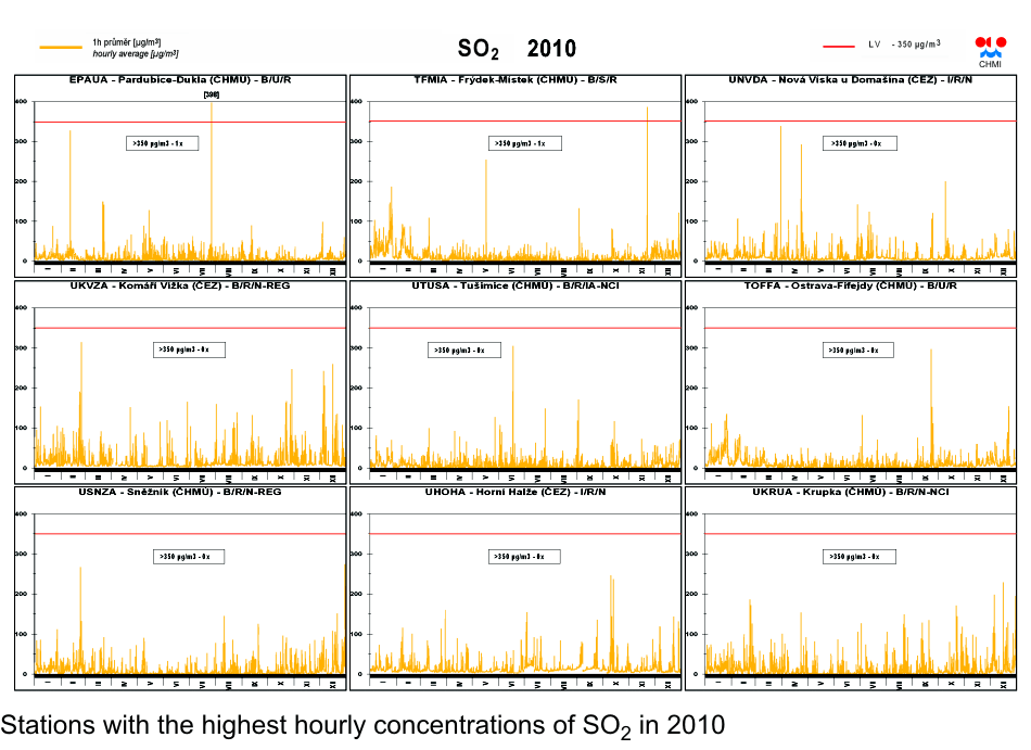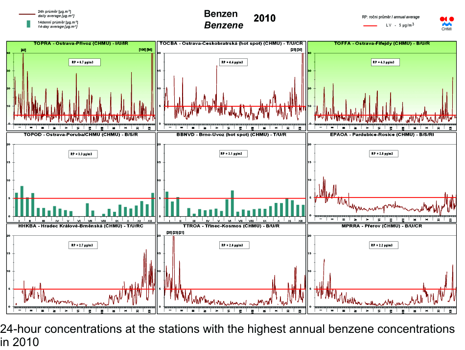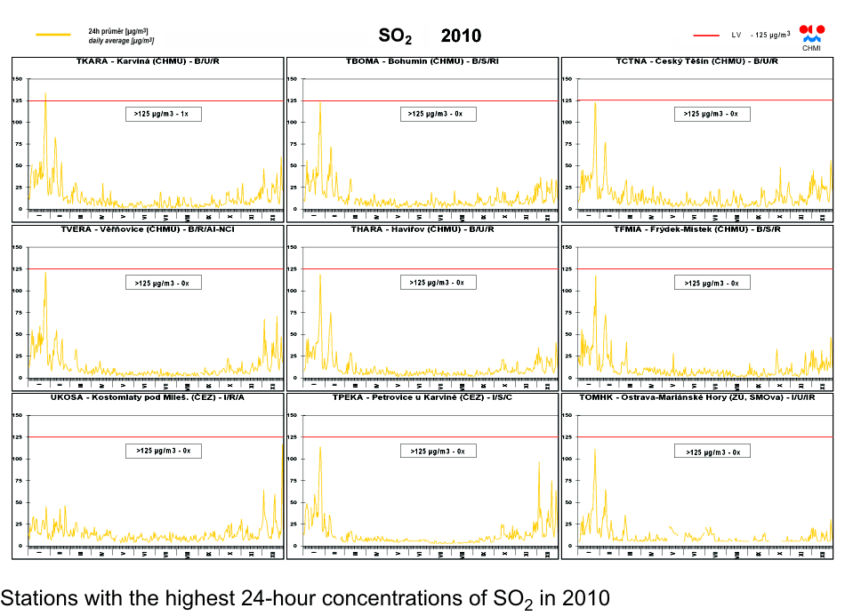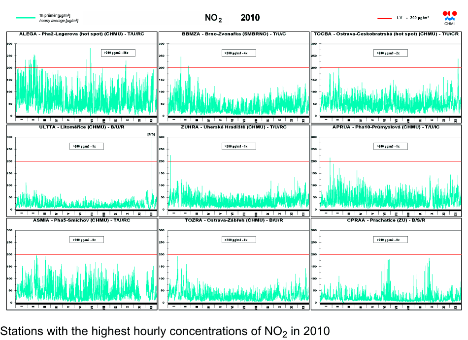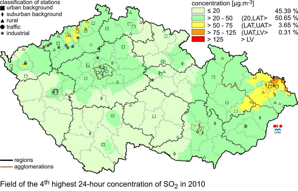 concentrations exceeding 180 μg.m-3 in the territory of the Czech