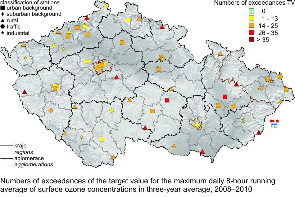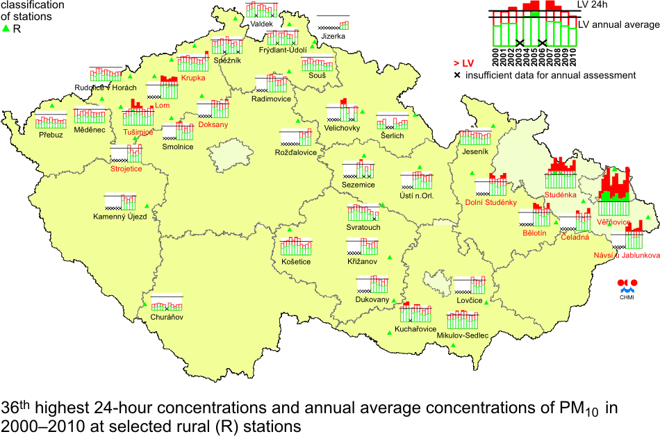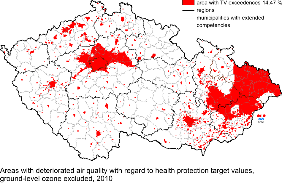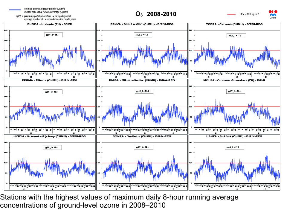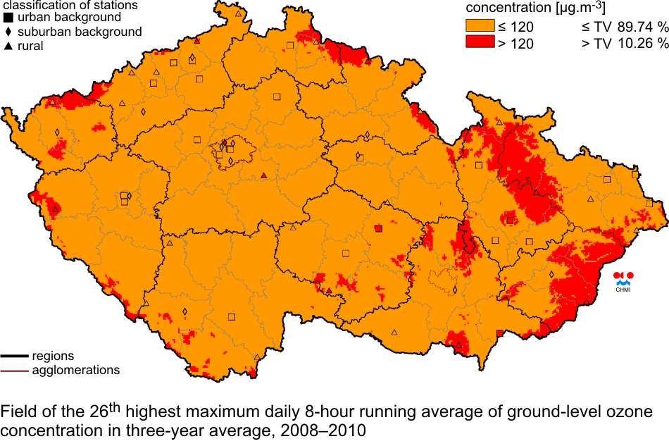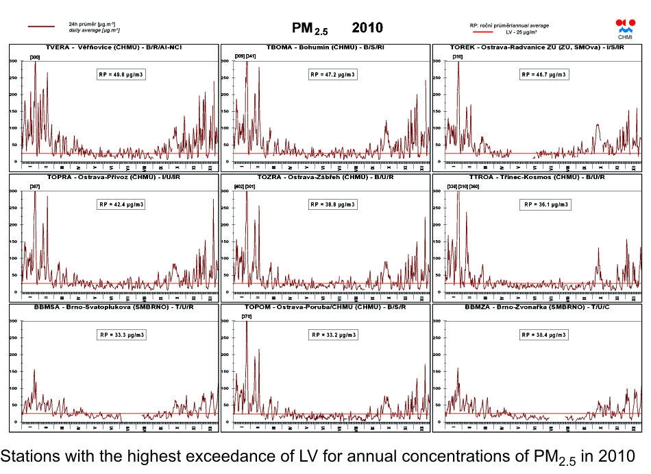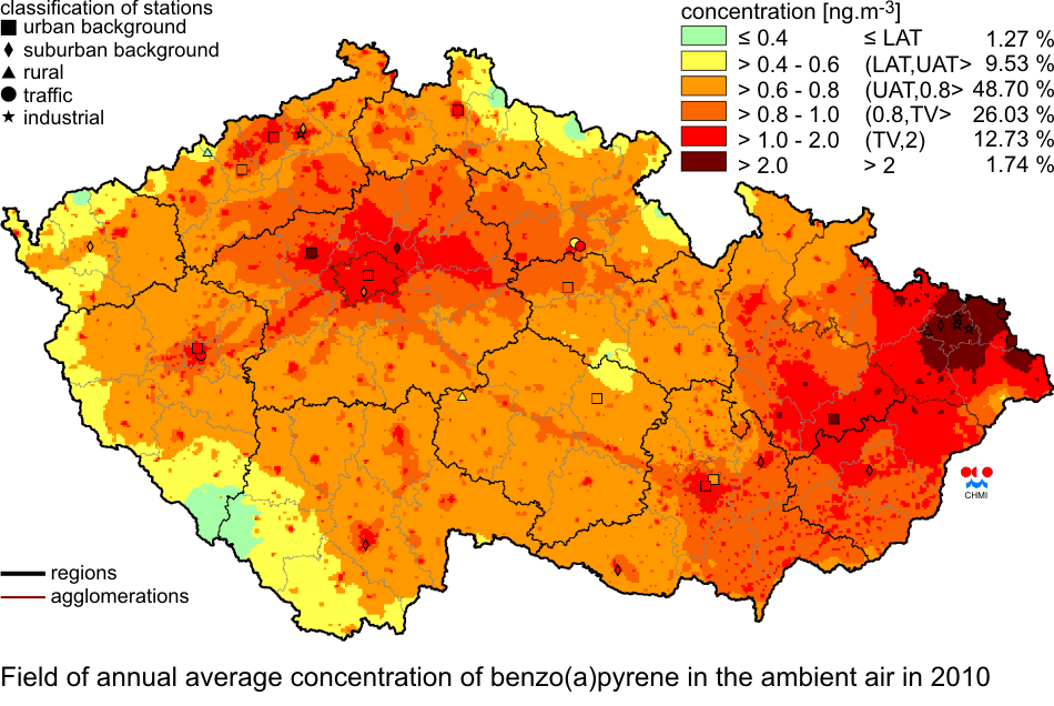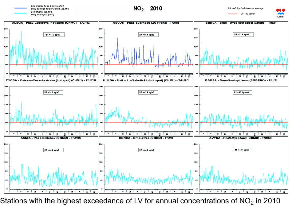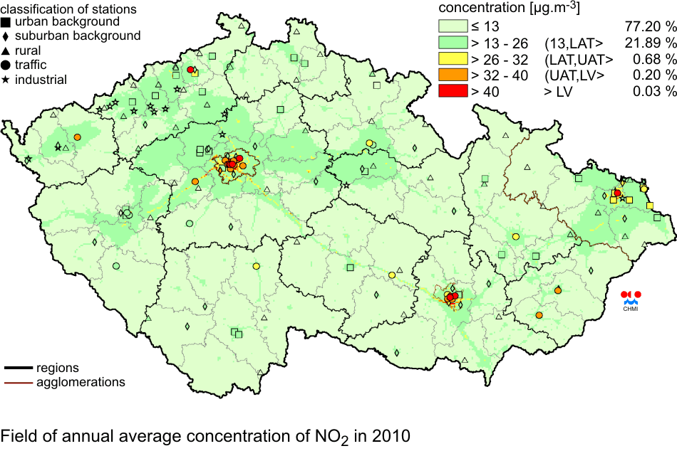 concentrations exceeding 180 μg.m-3 in the territory of the Czech