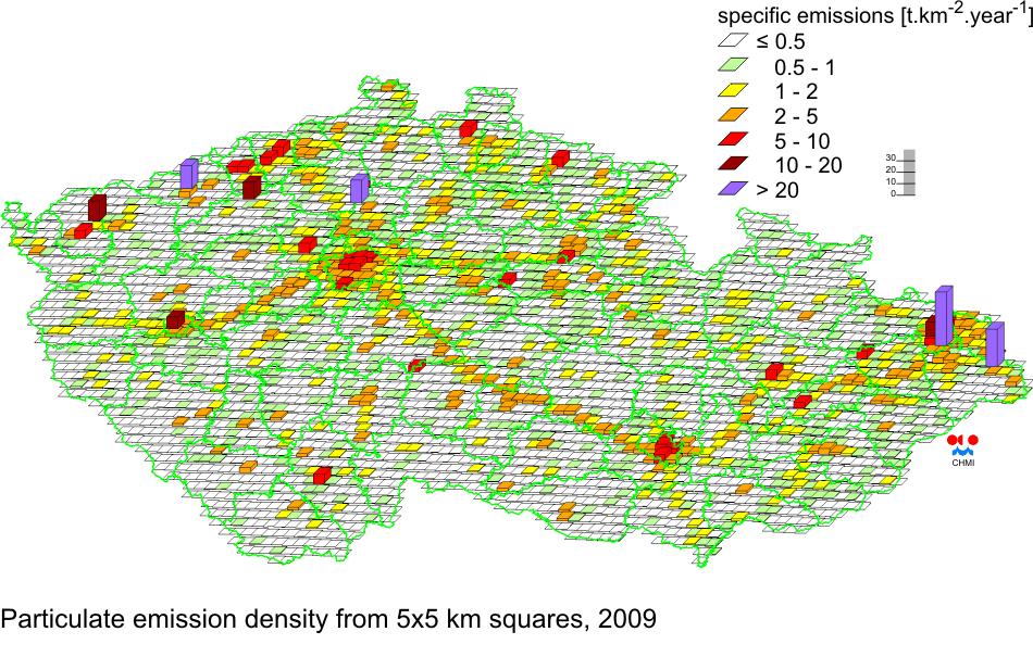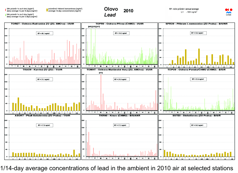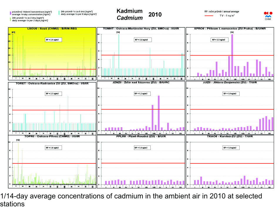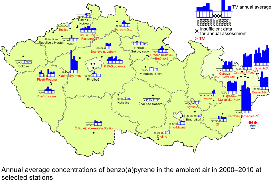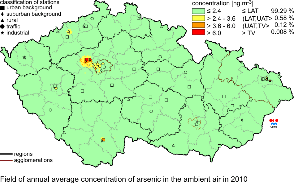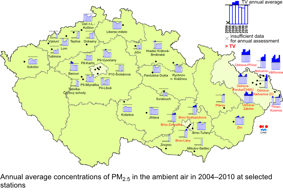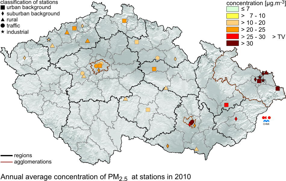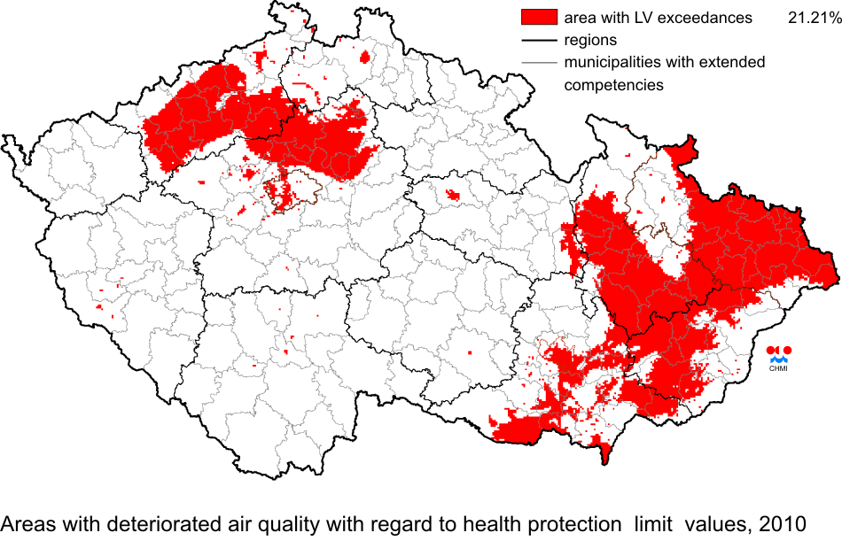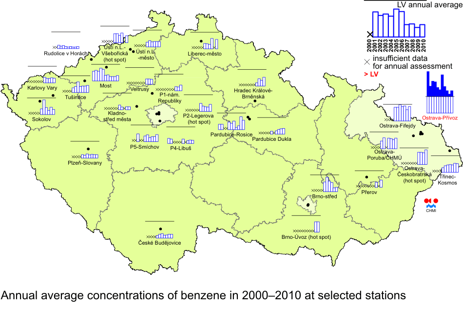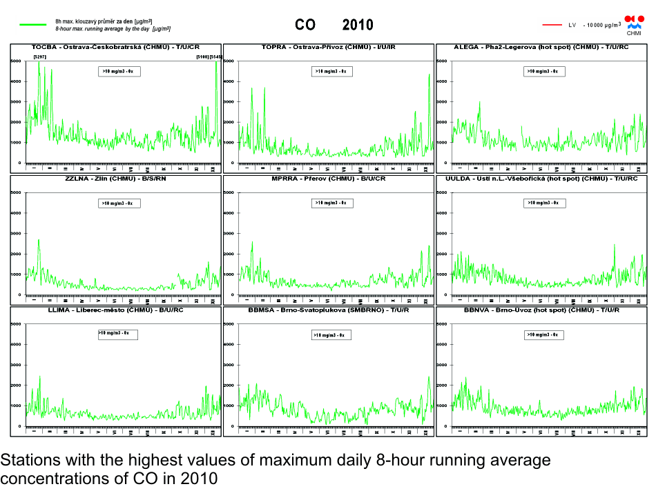 concentrations exceeding 180 μg.m-3 in the territory of the Czech