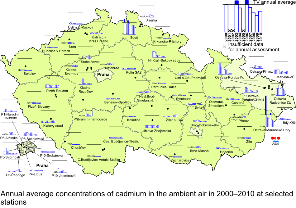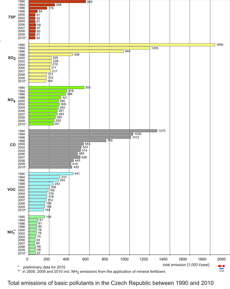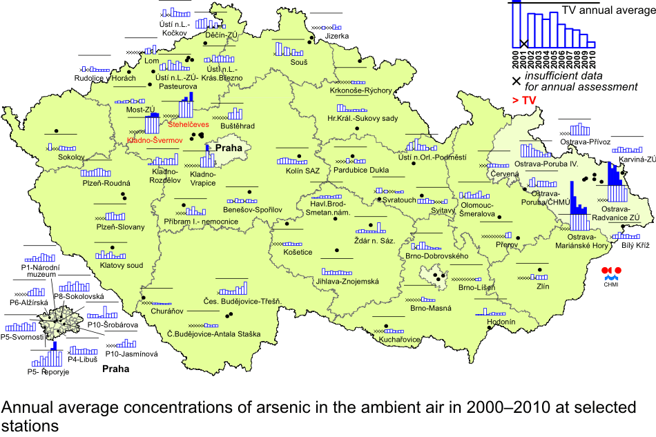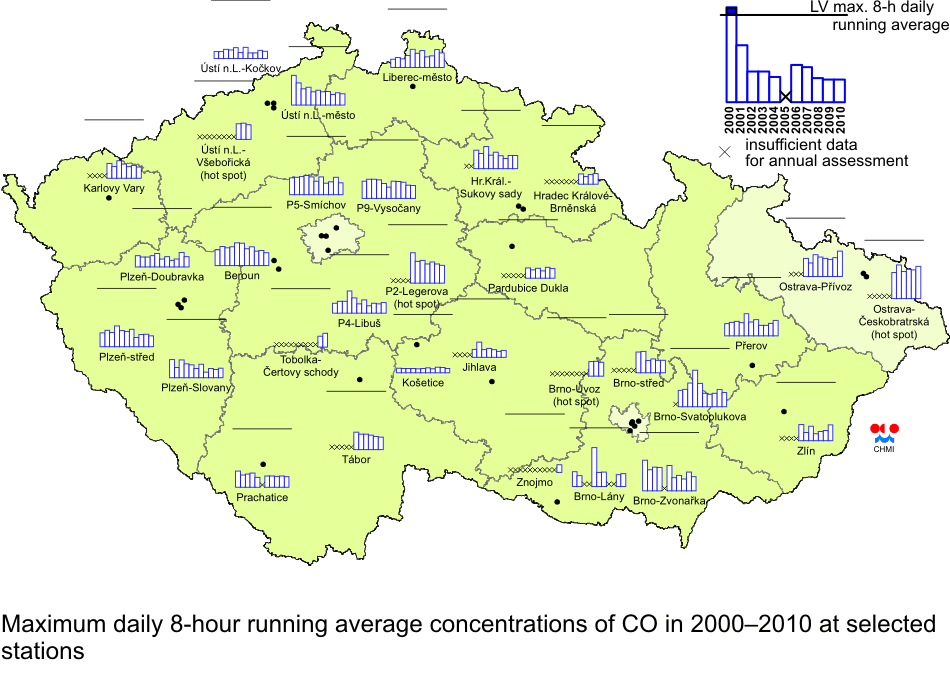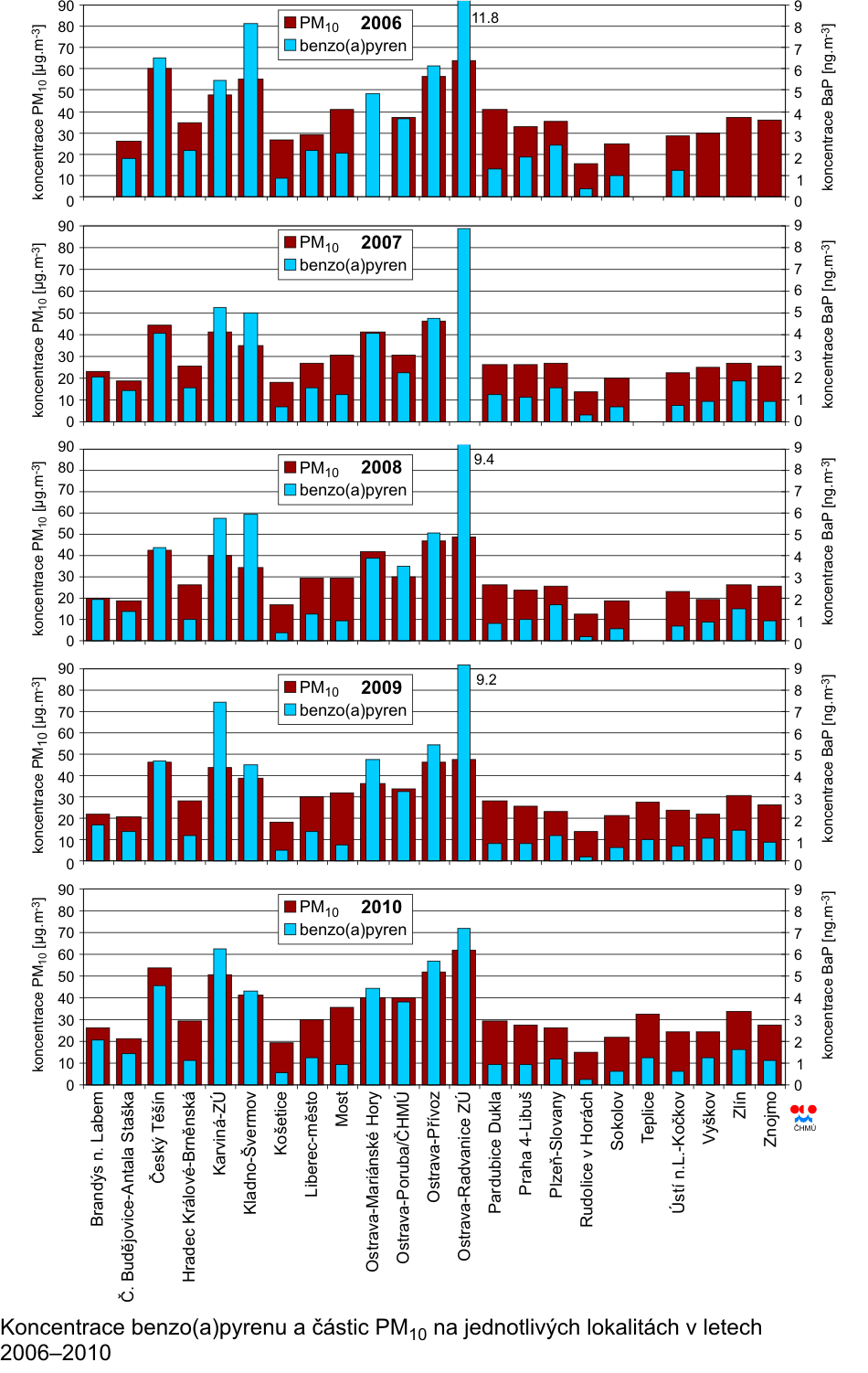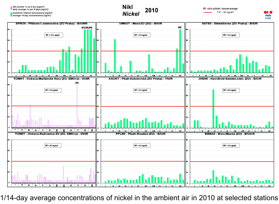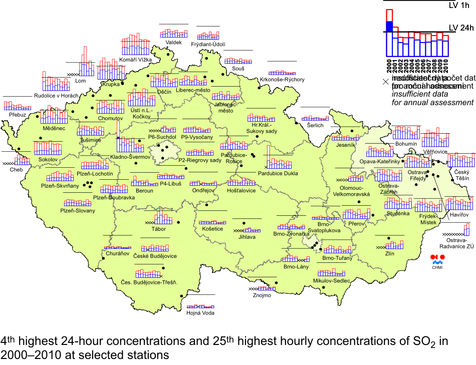 concentrations exceeding 180 μg.m-3 in the territory of the Czech