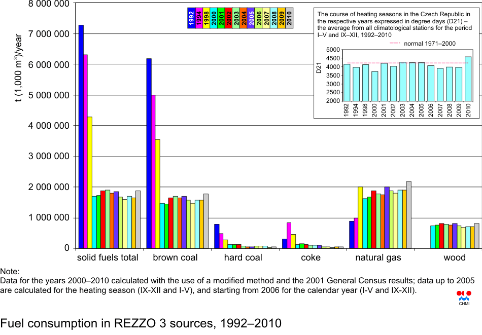 Fuel consumption in REZZO 3 sources, 1992–2010 |