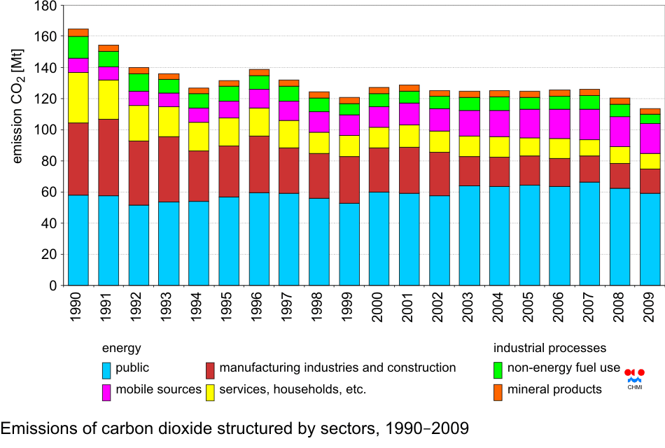 Emissions of carbon dioxide structured by sectors, 1990–2009 |
