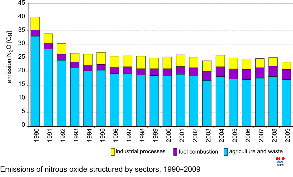 Emissions of nitrous oxide structured by sectors, 1990–2009 |