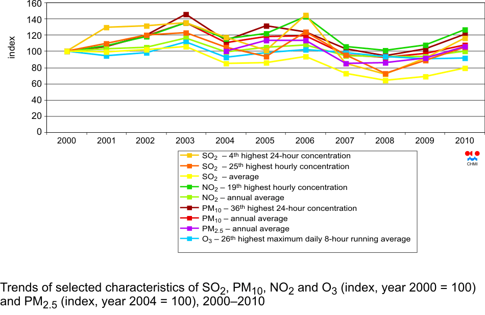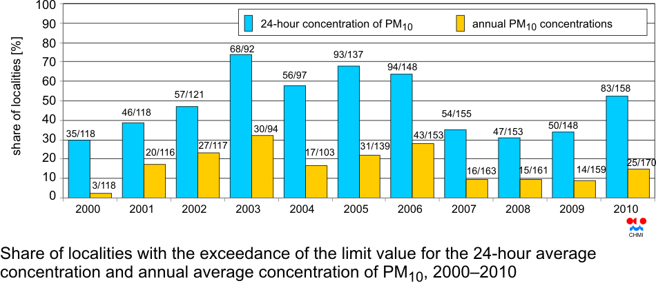 exceedances of the 24-hour limit value of PM10, 2000–2010 |