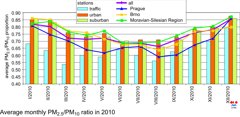 concentration 50 μg.m-3 in individual months of the year 2010 |