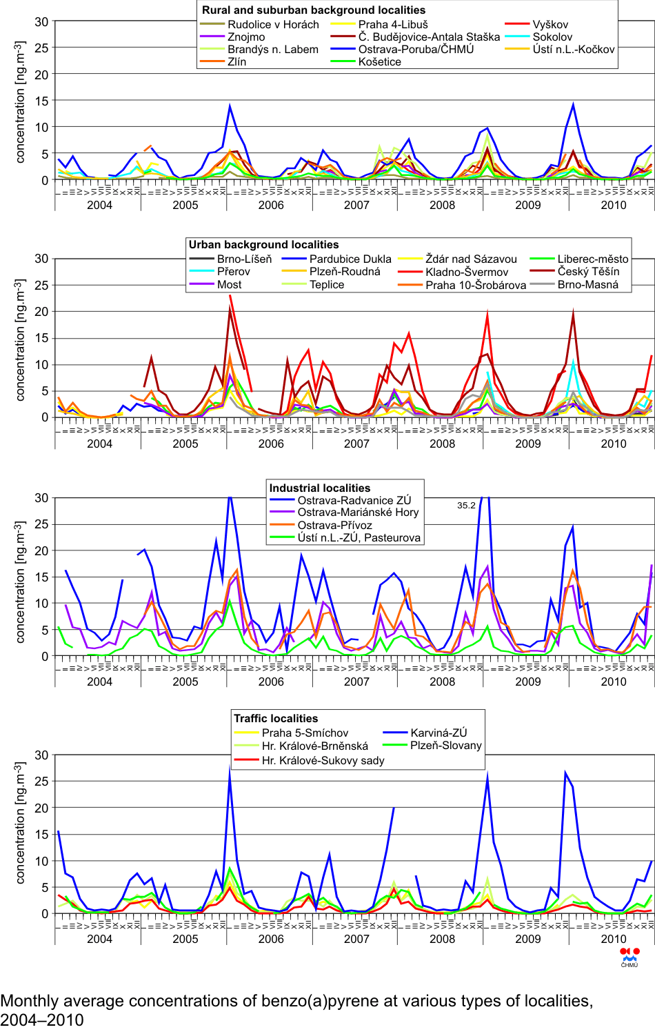 The average monthly PAH concentrations, Brno-LÃÅ¡eň, 2010 |