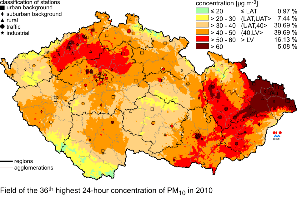 Field of the 36th highest 24-hour concentration of PM10, Prague