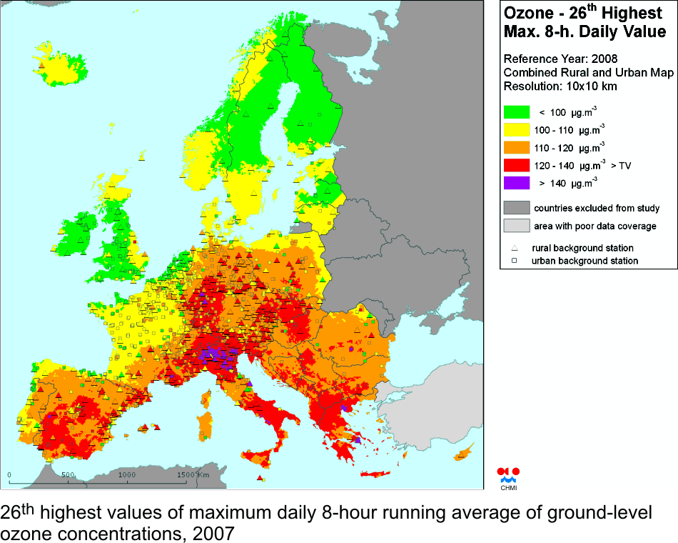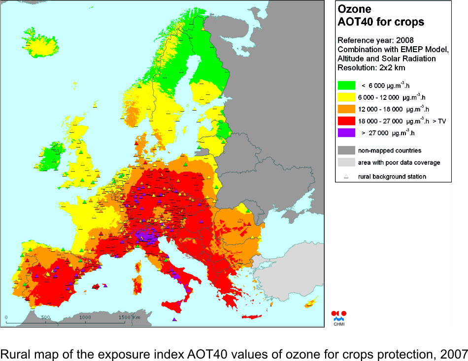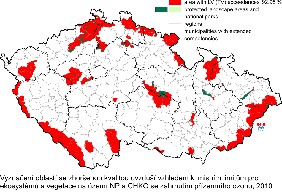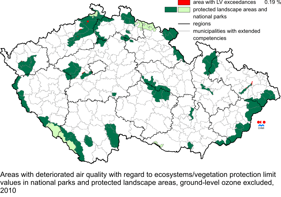 Areas with deteriorated air quality with regard to ecosystems/vegetation