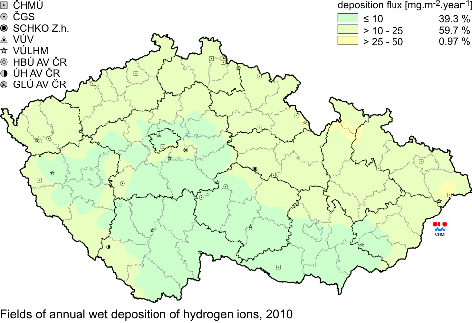 Fields of annual wet deposition of hydrogen ions, 2010 |