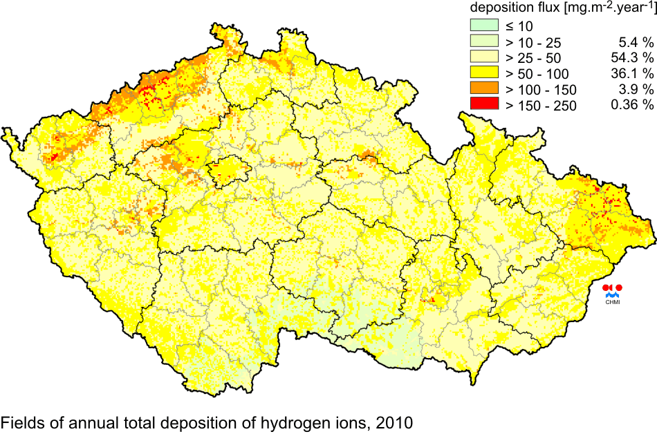 Fields of annual total deposition of hydrogen ions, 2010 |