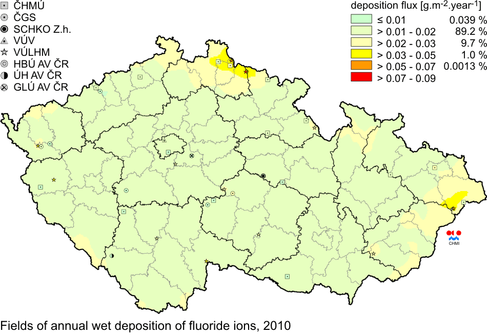 Fields of annual wet deposition of fluoride ions, 2010 |