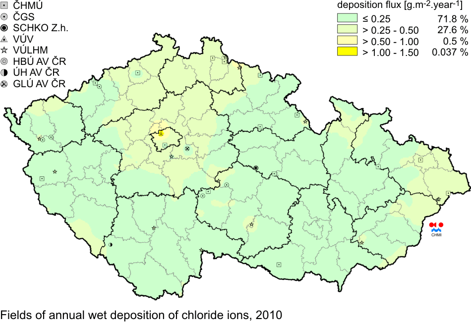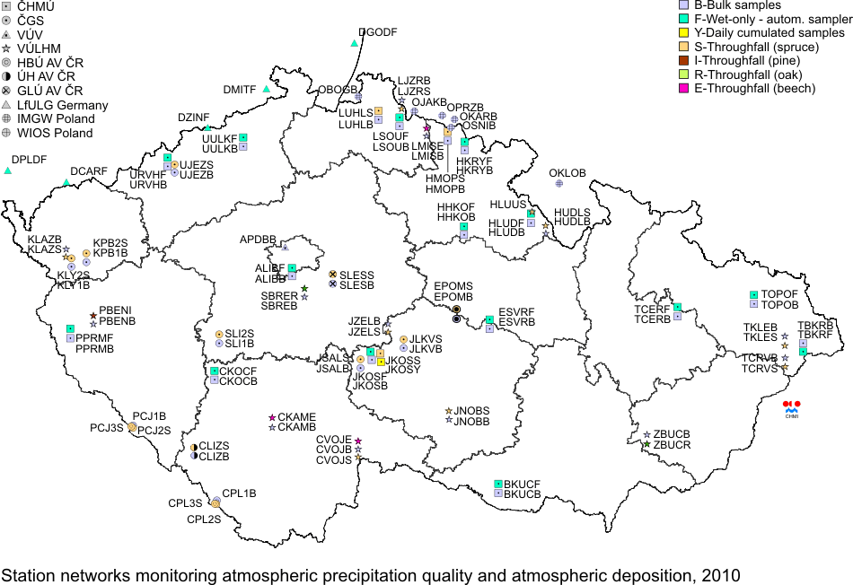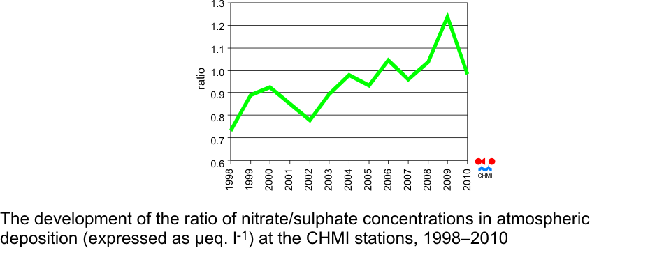 atmospheric deposition (expressed as μeq. l-1) at the CHMI stations,